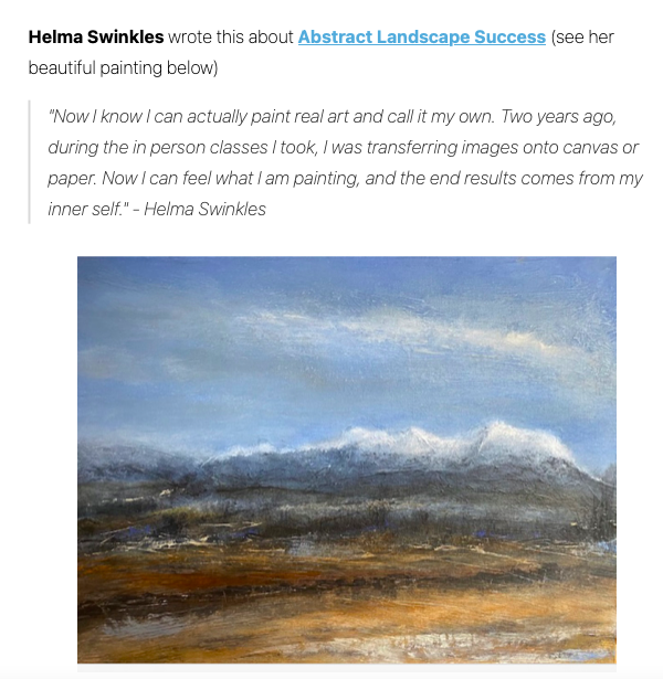 If you would like a hands-on step by step strategy to paint more abstractly you will absolutely love Abstract Landscape Success.