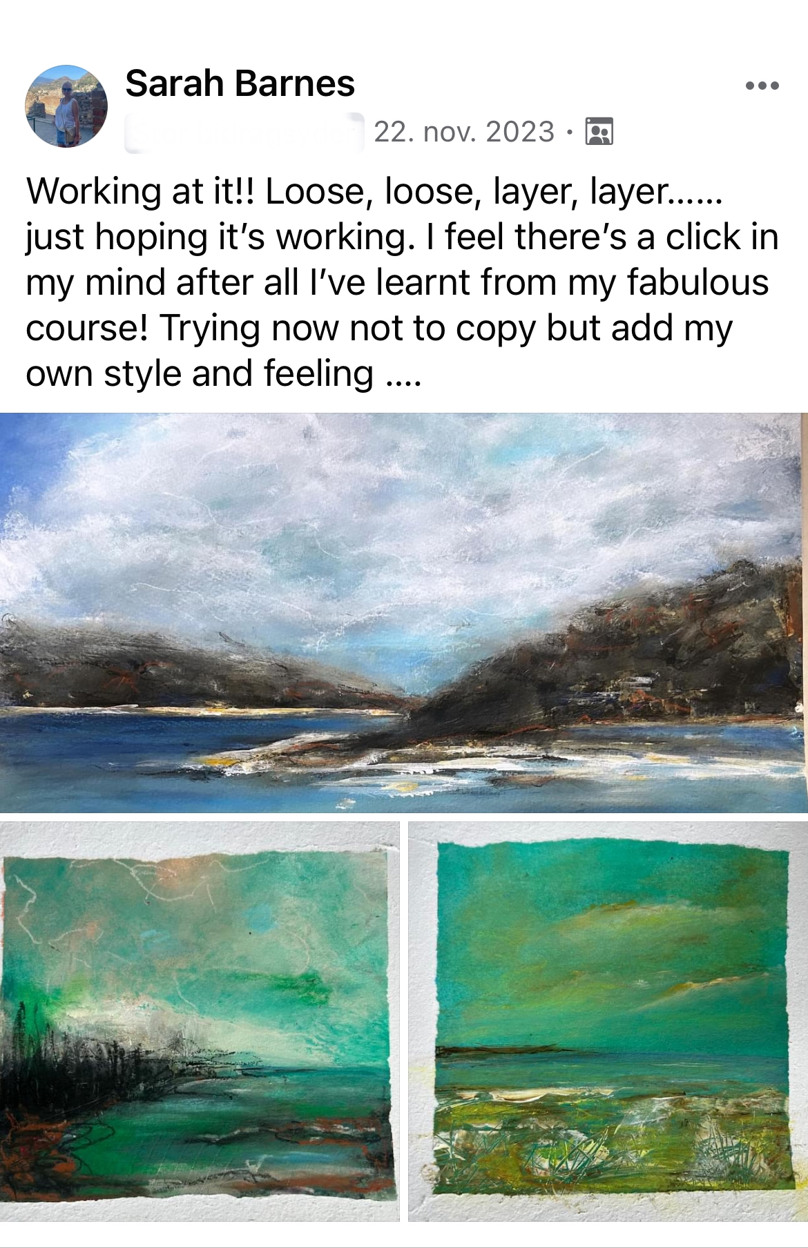 During and after the course you have access to a private facebook group where you may share your work and discuss with other painters and course participants.